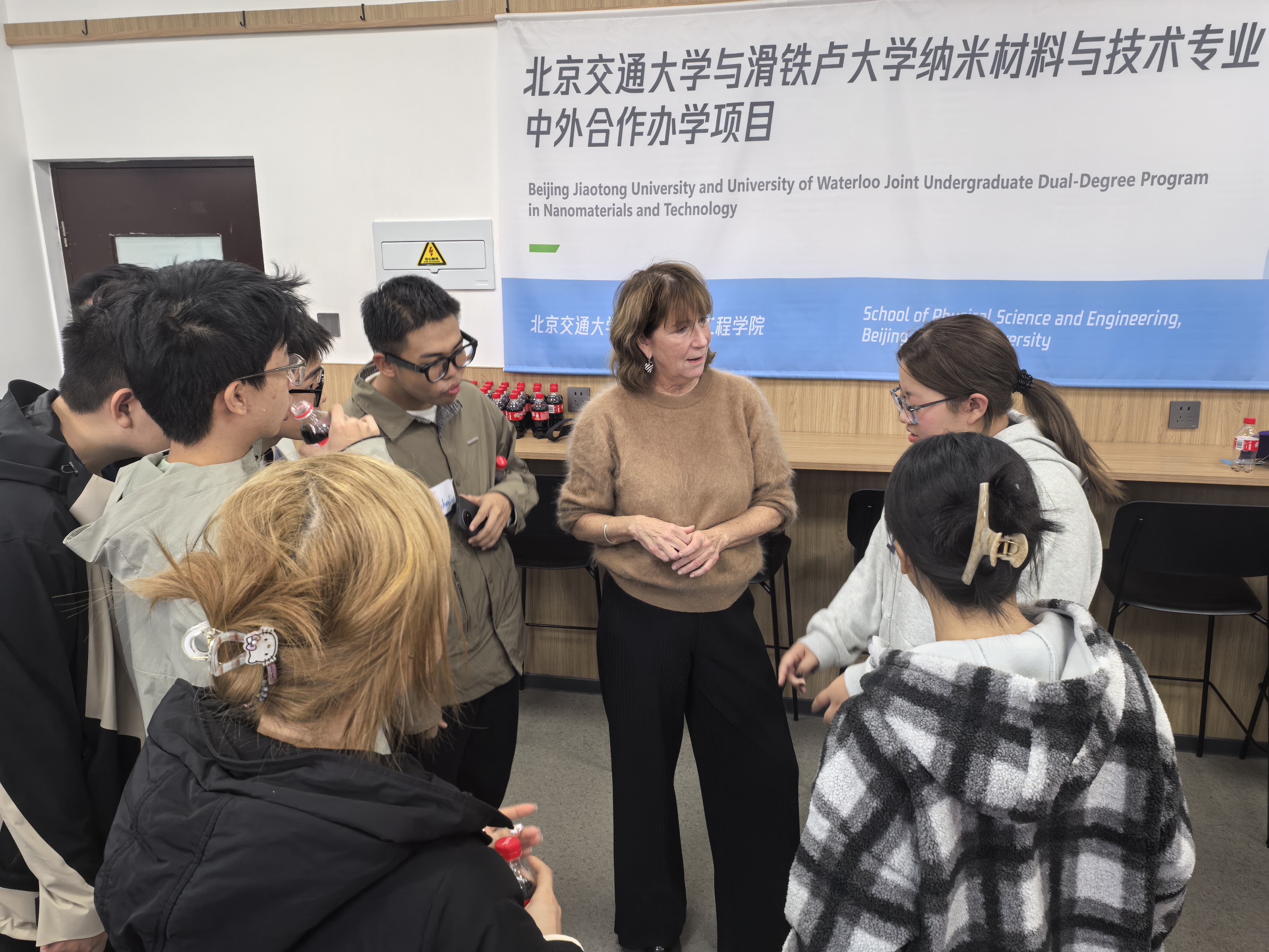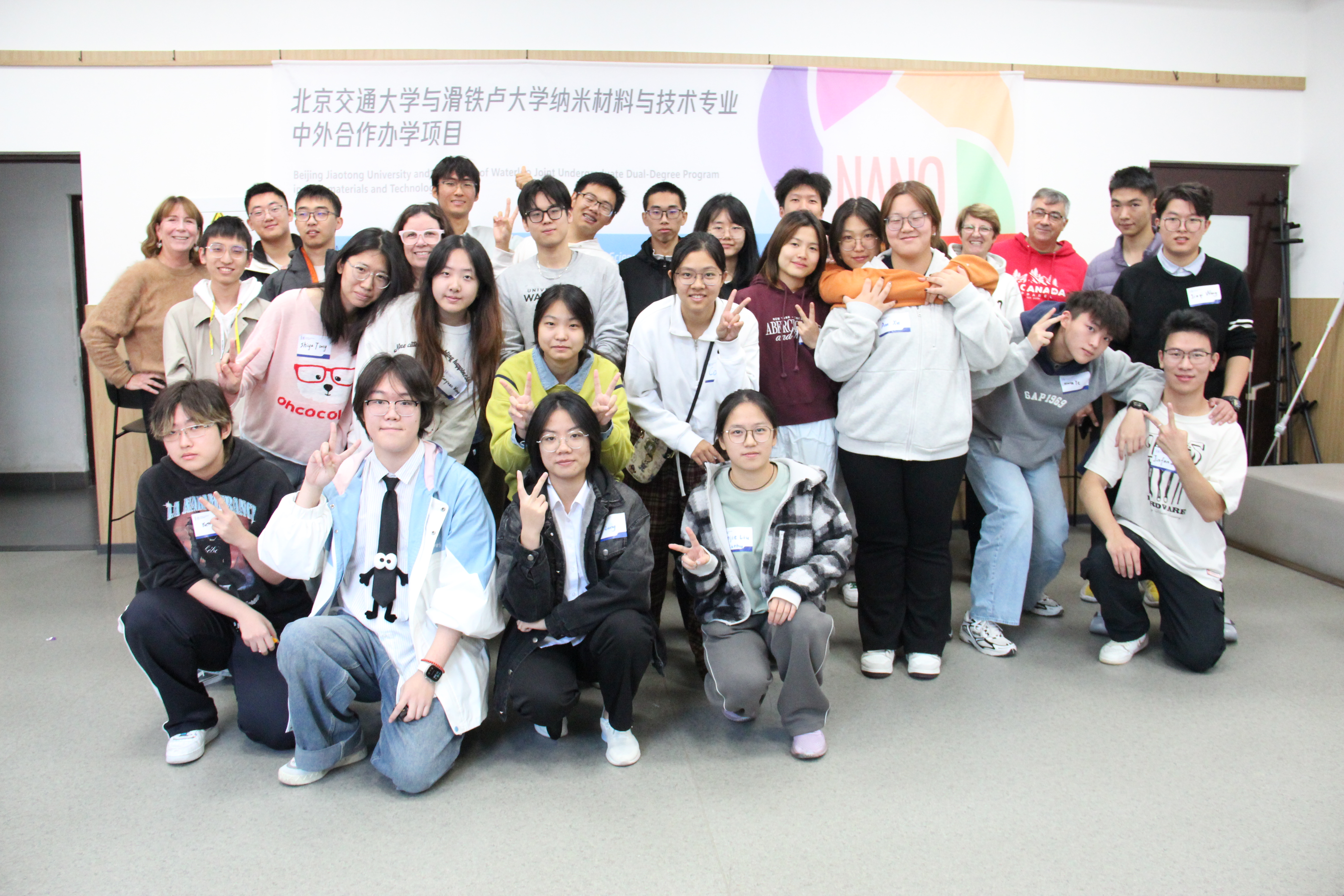 2025年10月18日上午,北京交通大学纳米材料与技术专业中外合作办学项目在机械楼301教室成功举办“中外师生面对面”交流会。本次活动邀请了来自加拿大滑铁卢大学的四位外籍教师及家属,与项目80余名在校学生进行了深入、热烈的交流。