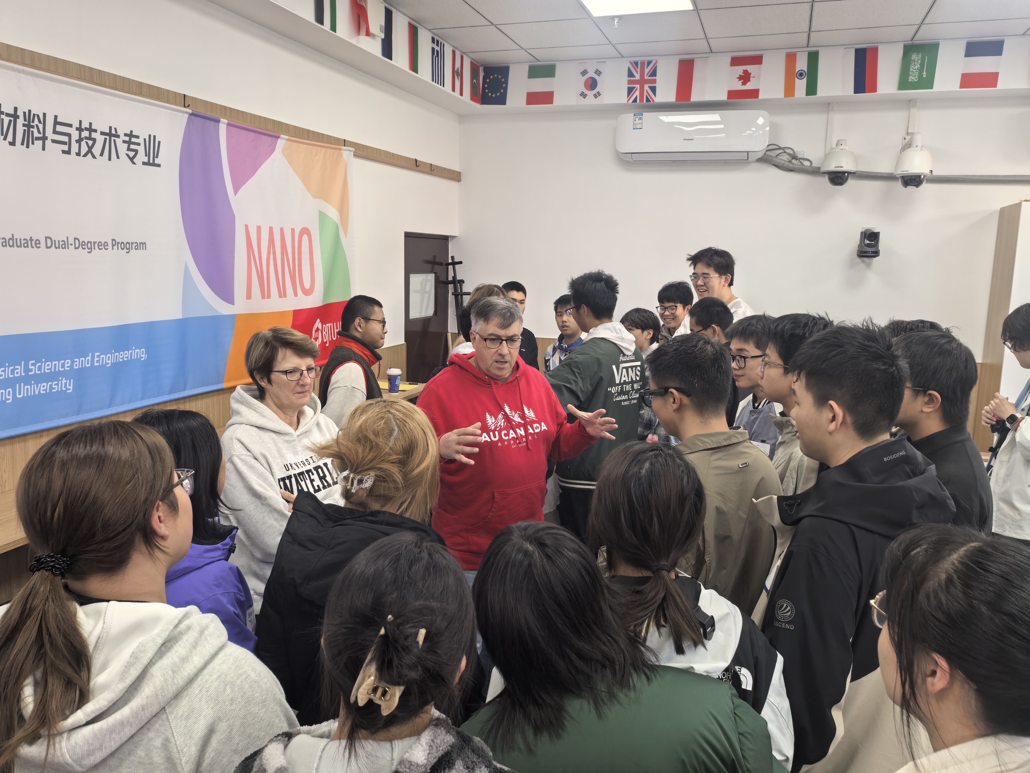 交流会上,同学们围绕英语学习、全英文专业课程挑战、赴滑铁卢大学学习与生活、学业与跨文化社交的平衡、未来深造与职业规划,以及纳米科技的前沿动态等关心的话题,踊跃交流。外教们耐心倾听,结合自身丰富的学术与人生经历,为同学们答疑解惑,提供了诸多中肯而宝贵的建议。现场气氛轻松活跃,互动频繁。